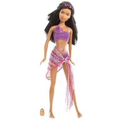 It's the ultimate beach party. Christie doll looks totally cool in the latest beach fashion, hanging out with friends at the bonfire and splashing in the waves at sunset. Christie doll wears a trendy lavender two-piece swimsuit with a shimmery shawl-style wrap and comes with a cool pair of lavender sunglasses and suntan lotion. Measures 12" tall. Read more...