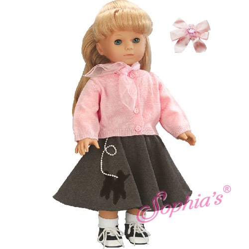 6 Item Bundle: Sophias Doll Clothes Set-18" Doll Pink & Gray Poodle Skirt, Sweater, Scarf, Saddle Shoes, Socks-Fits American Girl Dolls + Hair Bow Review